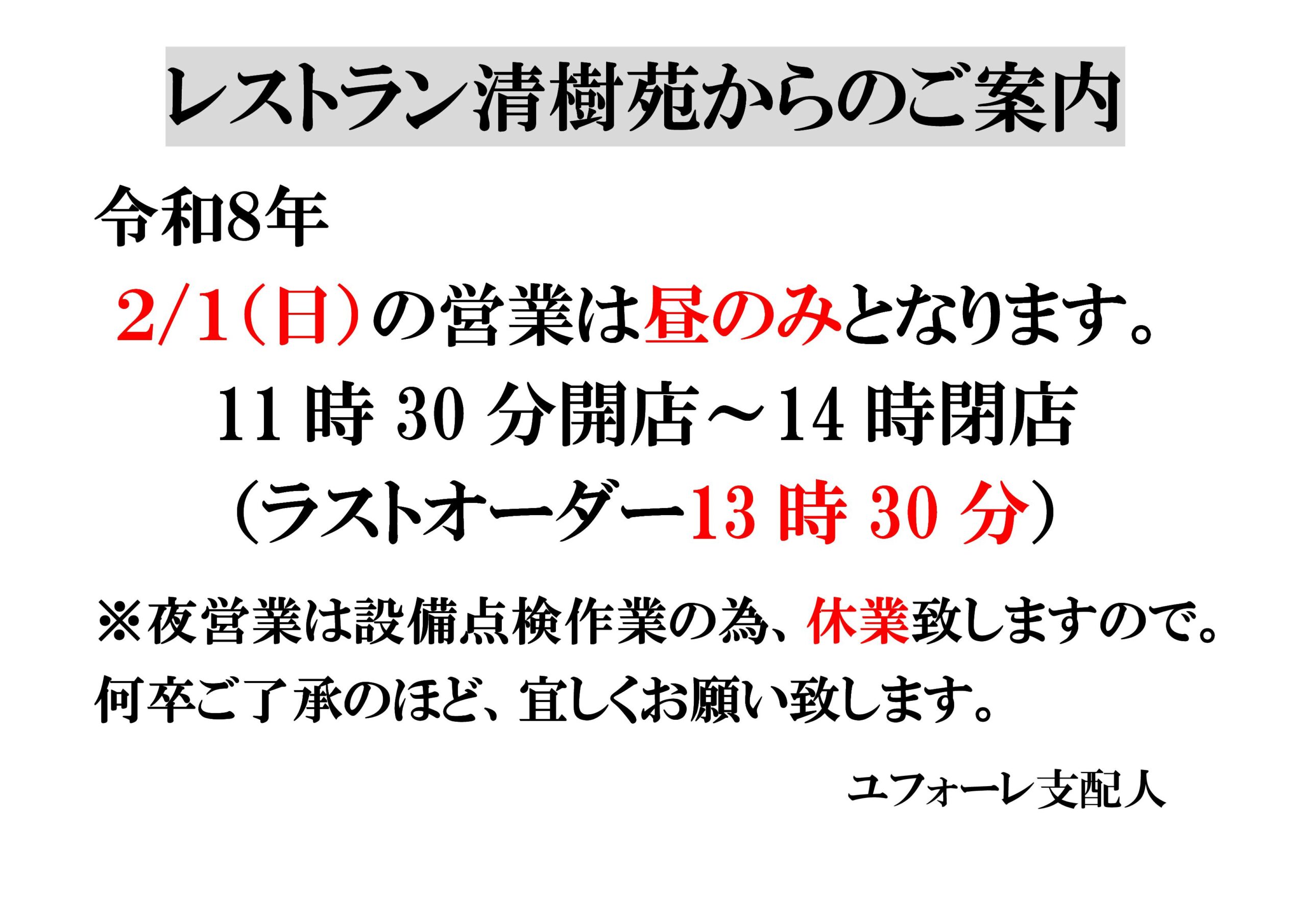 【重要なお知らせ】冬期休館日のお知らせ(2/2~2/5)
